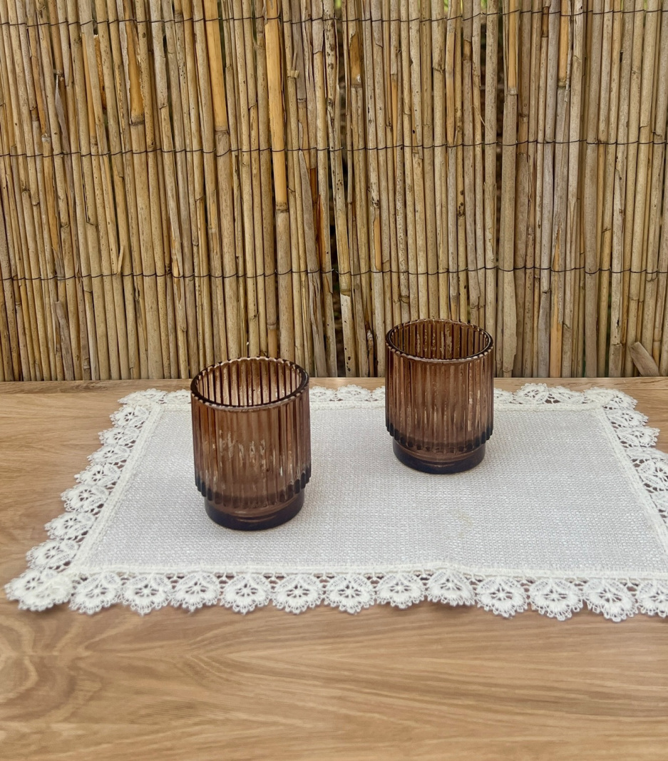 Teelichtglas braun geriffelt